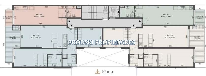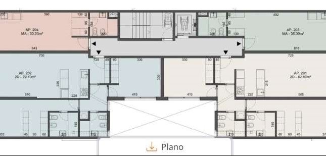- Ejemplo Apartamento 201 de 2 dormitorios -Superficie Total : 82.60m2 - se distribuye en 70.40 m2 internos + 12.20 m2 terraza con parrillero